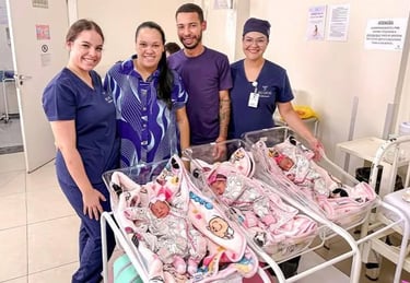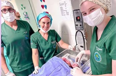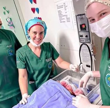 O procedimento ocorreu no centro cirúrgico com o suporte de uma equipe multidisciplinar formada por cerca de 15 profissionais, entre técnicos em enfermagem, enfermeiros, médicos pediatras, residentes e a ginecologista e obstetra Dra. Samanta Saggin. A cirurgia transcorreu com segurança, garantindo um desfecho positivo para a mãe e as bebês.
